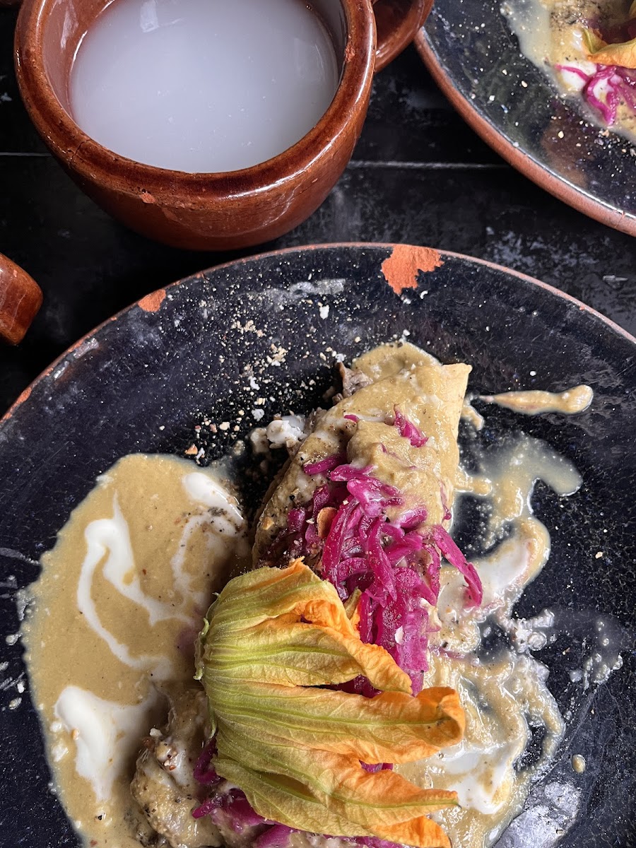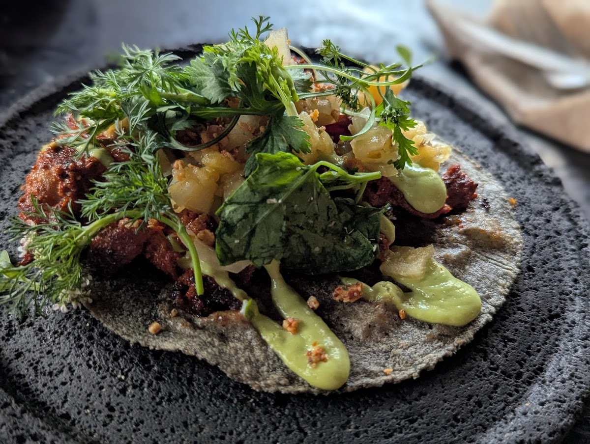 What We Ate: Five surprises courses including a tamale, apple taco, molletes, and a squash blossom enchilada Would Recommend? 100% yes Creative Mexican cuisine on a covered patio, serving surprise after surprise. Showed up right at opening and were treated to five unique and tasty dishes before tapping out. No menu, the server simply asks after each course if you would like another, generally alternating between vegetable-forward and meat-forward. Each dish was delightful and beautifully presented.